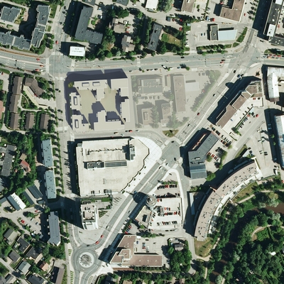 Kuusi kerrostaloa rajaa katuja ja ympäröi kahta korttelipihaa autohallin päällä. Julkisivujen ilme ja väritys on suurpiirteinen.